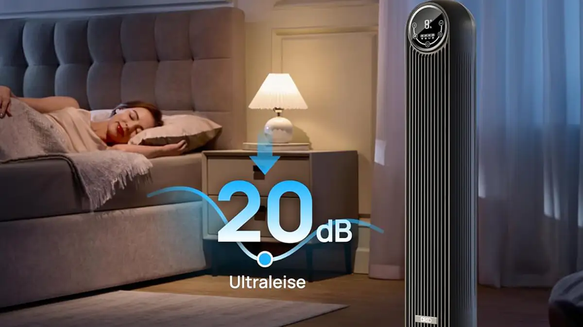 Insgesamt stehen vier Geschwindigkeitsstufen zur Verfügung. Dabei dreht sich der Turmventilator sich um 90 Grad. Der Hersteller verspricht einen „erholsamen Schlaf“ dank einer „automatischen Displayabschaltung, der automatischen Stummschaltung im Schlafmodus sowie dem 8-Stunden-Timer“. Auch die Kunden sind überzeugt. Mit einer Bewertung von 4,6 Sternen und über 34 Tausend verkauften Exemplaren gehört das Gerät zu den Top-Produkten in seiner Kategorie.
