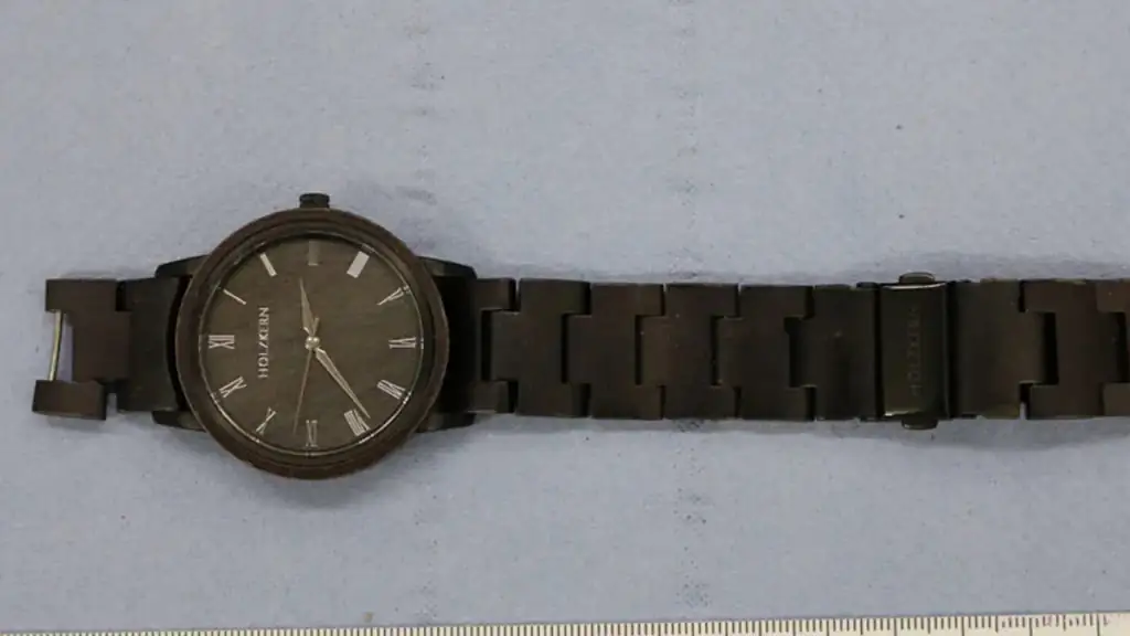 Bei dem zweiten Gegenstand handelt es sich um eine Armbanduhr, die womöglich dem Killer gehört. Die Uhr wurde im Bärbach, einem kleinen Bach, der am Kampenwand-Parkplatz vorbeifließt und in der Prien mündet, entdeckt. Es handelt sich um eine schwarze Armbanduhr der Marke „Holzkern“ mit rundem Ziffernblatt (Durchmesser circa 44 Millimeter), römischen Ziffern und einem Gliederarmband (Breite circa 22 Millimeter).