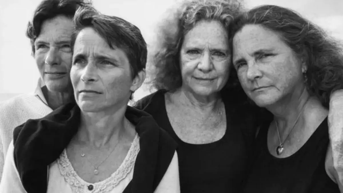 Im Jahr 2000 stehen die Brown-Schwestern wieder am Strand und feiern den Beginn eines neuen Jahrhunderts. Dieses Bild markiert nicht nur einen weiteren Moment in ihrem jährlichen Fotoprojekt, sondern auch einen symbolischen Schritt in eine neue Ära ihres Lebens.