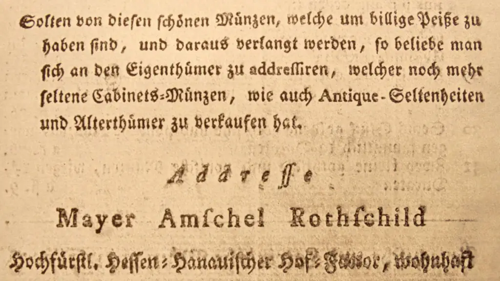 Mayer Amschel Rothschild gelang das ganz hervorragend. Innerhalb weniger Jahre macht er sich in der Judengasse einen Namen als Münz- und Wechselhändler und konnte sich für damalige Verhältnisse ein schönes Vermögen aufbauen.