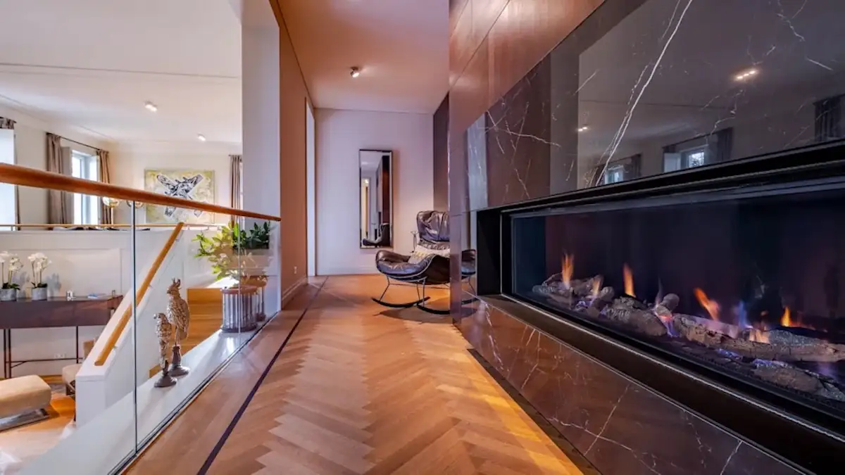 Hamburg-Eppendorf ist eines der begehrtesten Viertel der ohnehin schon teuren Stadt. Für 8,9 Millionen Euro kann man dort ein 423 Quadratmeter großes Penthouse kaufen, das sich offenbar direkt am Kanal befindet. Die Einrichtung ist ausgesprochen modern und es gibt sowohl eine Dachterrasse mit Glasdach als auch ein beleuchtetes Wasserbecken sowie eine Dampfsauna