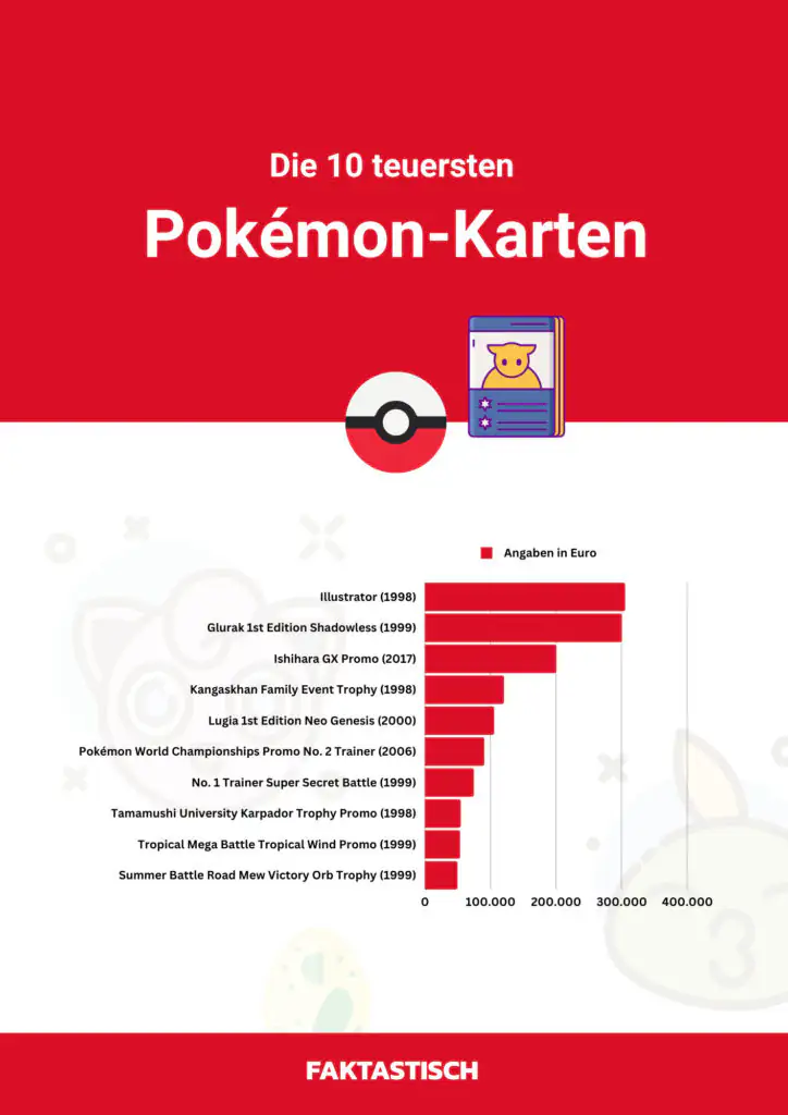 Die Ehre, die teuerste Pokémon-Karte der Welt zu sein, gebührt der "Pokémon Illustrator"-Karte. Diese extrem seltene Karte – geziert von dem berühmten Pokémon-Maskottchen Pikachu – wurde ursprünglich 1997 für einen Illustrationswettbewerb in Japan produziert. Es wird geschätzt, dass lediglich 39 Exemplare der Karte existieren, wodurch sie zu einem äußerst begehrten Sammlerstück geworden ist.