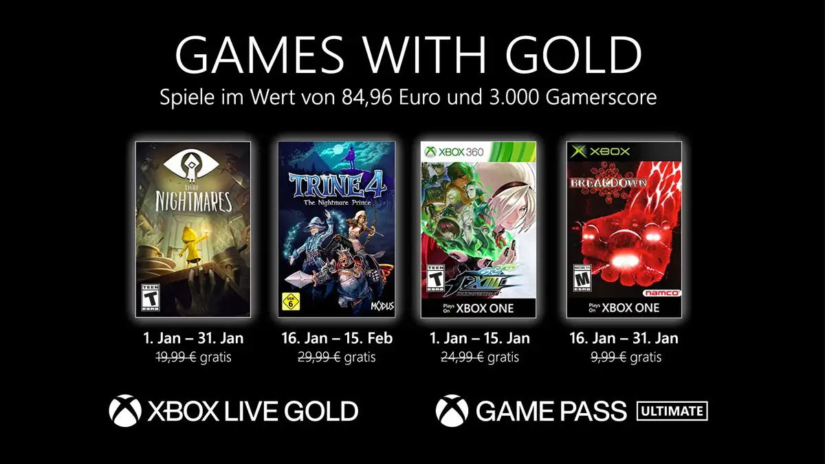 Microsoft hat vier neue Spiele für alle Abonnenten des Games with Gold-Dienstes vorbereitet. Die Spiele laufen auf der aktuellen Generation der Xbox Series X/S, Xbox One und Xbox One X. Sogar der Klassiker, die Xbox 360, kann die Spiele abspielen. Dank Abwärtskompatibilität laufen die Spiele auf allen Konsolen-Generationen. Cool oder?