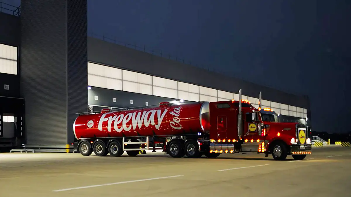 Schon Ende November wird der Coca-Cola Weihnachtstruck in Deutschland auftauchen. Nun bekommt der Klassiker aber Konkurrenz. In Großbritannien wird der Discounter Lidl einen eigenen Weihnachtstruck auf die Straßen schicken – bedruckt mit der Eigenmarke „Freeway Cola“.