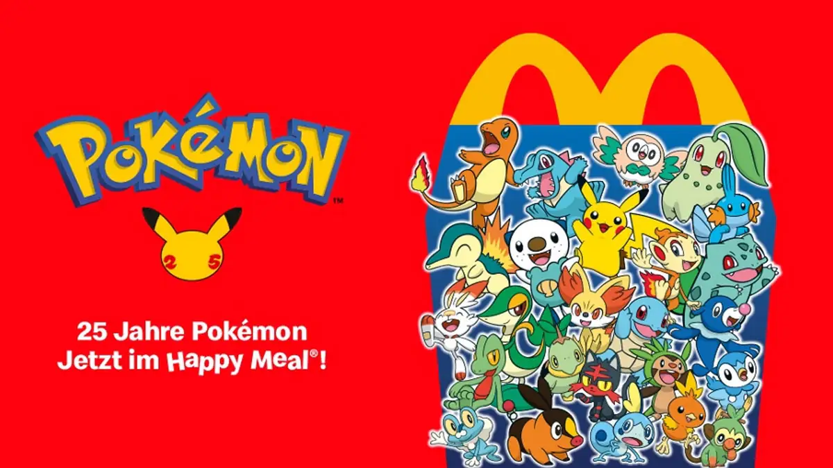 Pokémon feiert seinen 25. Geburtstag! Demnächst gibt es Sammelkarten in jedem Happy Meal bzw. Kids Menü bei McDonald’s. Nachdem die Aktion bereits in den USA für Aufsehen sorgte, verkündete die Fast Food Kette auf der deutschen Webseite, dass die Aktion bald auch bei uns startet. In diesem Artikel erfährst du, von wann bis wann die Aktion gilt und welche Karten es im Happy Meal gibt.