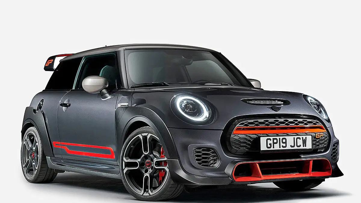 Offizielle Angaben zum Verbrauch verraten, dass der Mini Cooper auf 100 km 7,3 Liter benötigt. Neben einer Achtgang-Wandlerautomatik gibt es eine Sportbremsanlage mit Aluminium-Vierkolbensätteln und ein abgestimmtes Fahrwerk, das Auto um 10 Millimeter tiefer macht. Ein paar Teile aus hochwertigem Carbon und große Lufteinlässer unterscheiden den GP optisch vom normalen John Cooper Works.