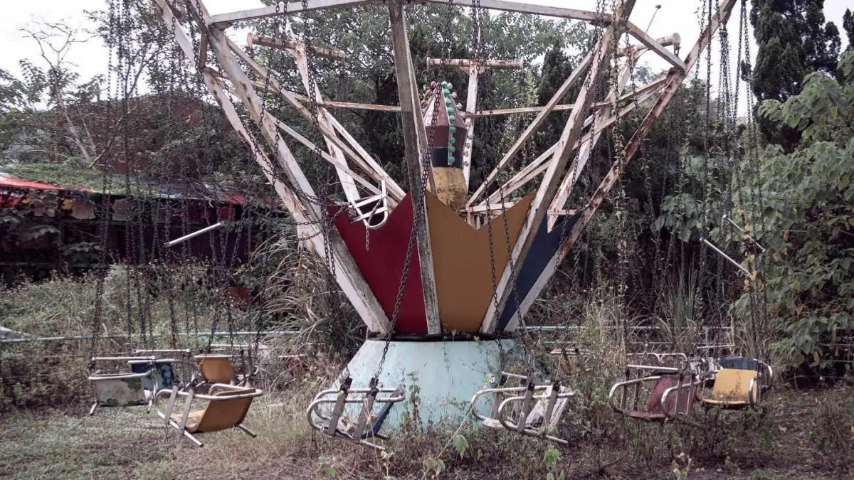 Heute ist der verlassene Park ein Ort des Verfalls, an dem die Natur langsam die Kontrolle zurückgewinnt. Verrostete Fahrgeschäfte und überwucherte Wege erinnern an das, was einmal war – und an die Tragödien, die diesen Ort für immer verändert haben
