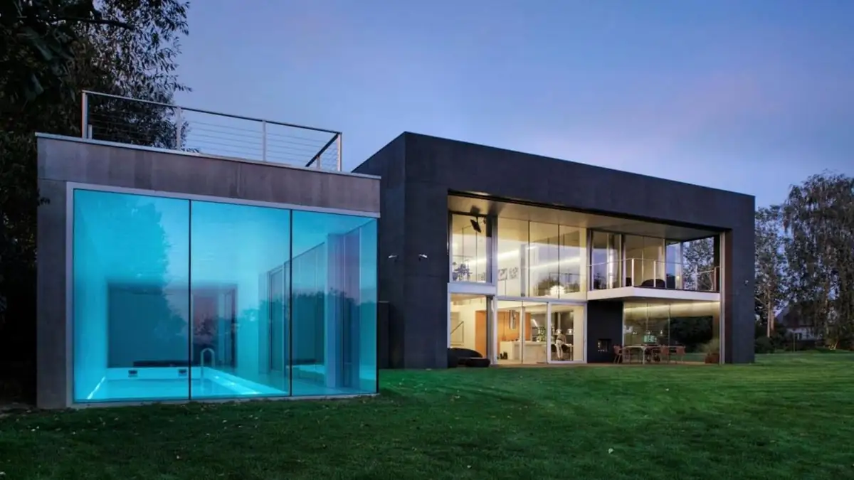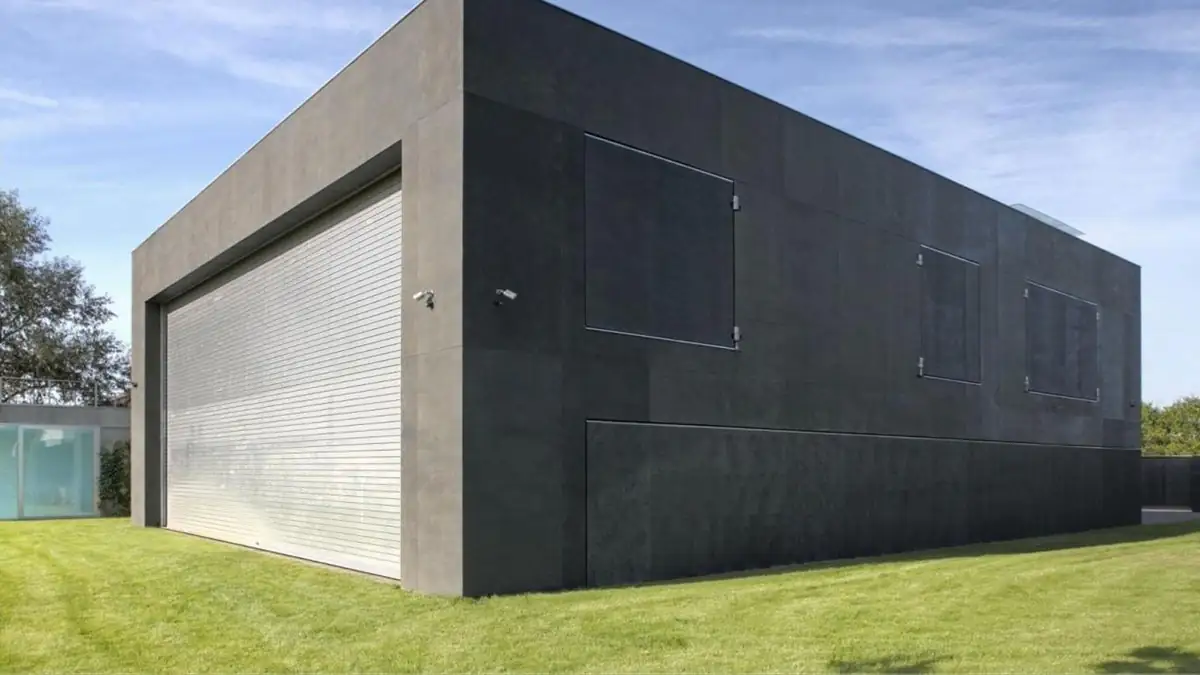 Wenn die Aussenmauern erst einmal verschoben wurden und in Position sind, kann man nur noch über einen Innenhof zum Haus gelangen. Das Besondere hierbei ist, dass der Innenhof von allen Seiten verschlossen ist. Das 567-Quadratmeter-Wohnhaus im Bunkerstil kommt mit Hauswänden, die eine Dicke von 46 Zentimetern haben. Der Auftraggeber des „Safe House“ gewann mit dieser Immobilie mehrere Preise und wollte sich eigentlich nur vor Einbrechern schützen. Zusätzlich kann man die vollverglaste Terrasse mit 14x6 Meter grossen Rolladen abtrennen und ist so definitiv sicher vor Einbrechern oder Zombies.