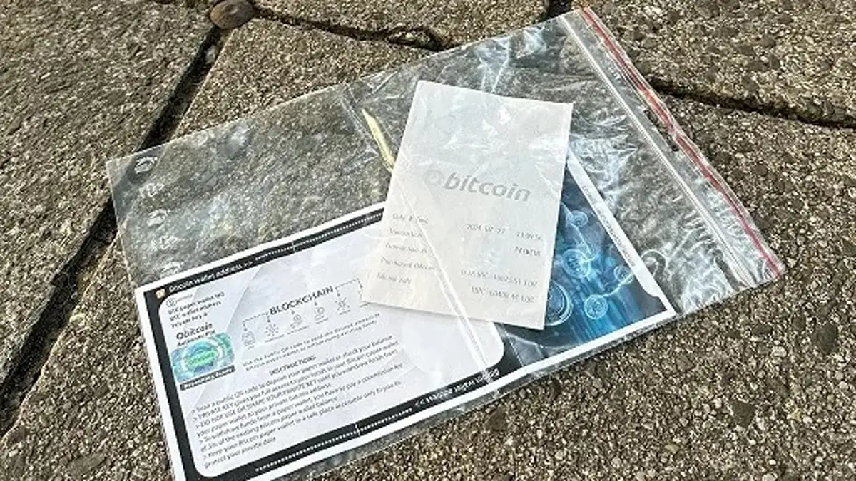 Bei der 300-Euro-Falle finden die Betroffenen Bitcoin-Paper-Wallets, die einfach so auf der Straße liegen. In der kleinen Plastiktüte befindet sich außerdem ein Zahlungsbeleg. Die darauf angegeben 10.000 Euro sollen den Eindruck vermitteln, dass tatsächlich Bitcoins auf das angebliche Konto eingezahlt wurden. Und genau in diesem Moment werden die Fußgänger hellhörig.