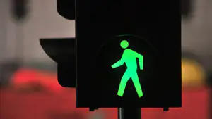 Der Knopf an der Unterseite des Ampelkastens stellt eine weitere wichtige Information zur Verfügung. Betätigt man ihn, ist bei der Umschaltung auf Grün ein weiteres akustisches Signal zu hören. Bei einigen Ampeln vibriert der Knopf sogar zusätzlich.