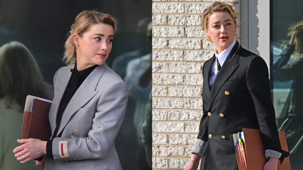 Johnny wählte einen grauen Anzug mit einem schwarzen Hemd. Kurze Zeit später erschien auch Amber in einem grauen Hosenanzug, kombiniert mit einer schwarzen Bluse. Johnny setzte auf eine schwarze Gucci-Krawatte mit einer goldenen Stickerei. Amber wählte kurz danach die gleiche Gucci-Krawatte und kombinierte sie mit einem schwarzen Anzug.