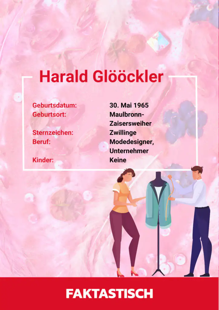Harald Glööckler ist ein deutscher Modedesigner, der bekannt ist für seine auffälligen und exzentrischen Kreationen. Geboren wurde er am 30. Mai 1965 in Maulbronn. Schon in jungen Jahren entdeckte er seine Leidenschaft für Mode und begann seine Karriere als Auszubildender in einem Modehaus. Später gründete er seine eigene Modemarke, die unter seinem Namen bekannt ist.