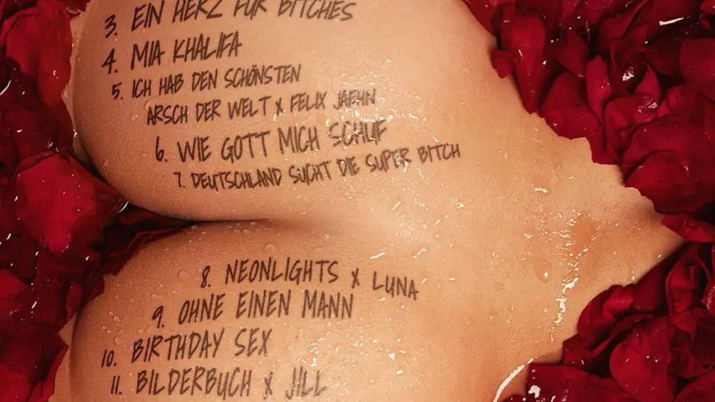 Auf dem Po der Musikerin sind nämlich zahlreiche Songs zu sehen. In schwarzer Schrift kann man die Tracklist ihres neuesten Albums „Ein Herz für Bitches“ schon einmal genauer betrachten. Am 1. September ist es dann endlich soweit und das neue Album geht offiziell in den Verkauf. Bisher wurden nur einige wenige Deluxe-Editionen vergeben. Insgesamt gibt es 14 Songs zu hören. Dass sich Katja etwas so Besonderes ausgedacht hat, um ihre neue Musik zu präsentieren, hatten ihre Fans wahrscheinlich nicht erwartet.