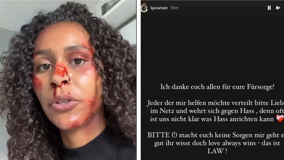 Die 25-Jährige postete ein Bild in ihrer Insta-Story, auf dem blaue Flecken und Blut an der Nase und an den Augen zu sehen ist. „Wie ihr seht, heute war ein heftiger Tag. Ich werde euch noch ein Video dazu machen, was passiert ist“, schreibt Lijana.