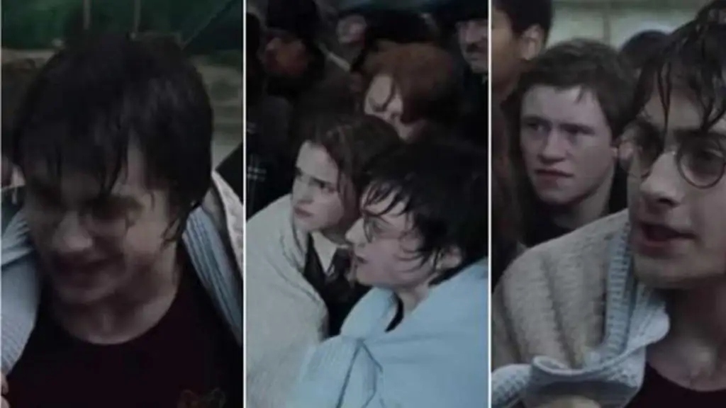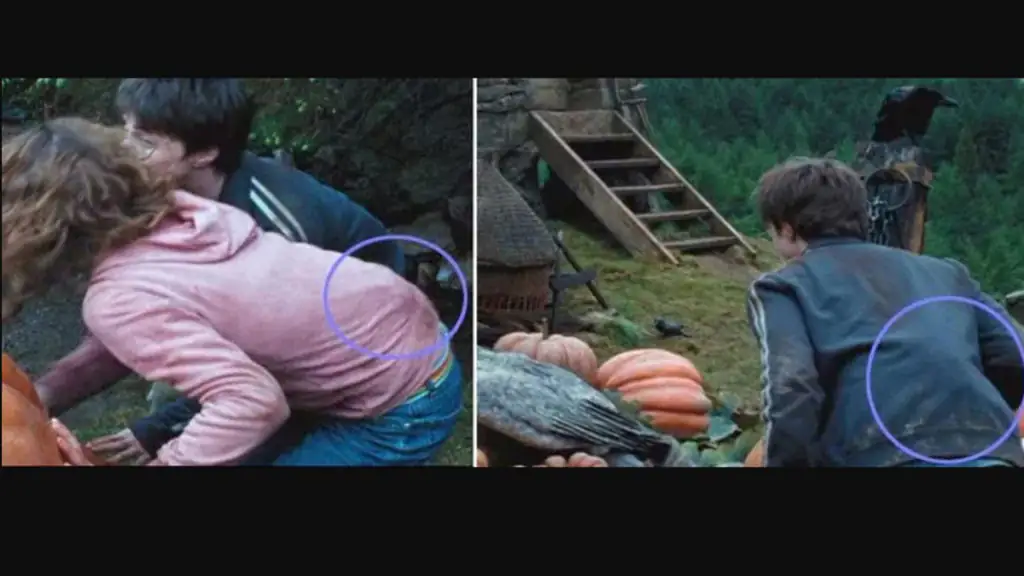 Das Handtuch, welches Hermine dem nassen Harry Potter bei der Unterwasser-Szene von „Harry Potter und der Feuerkelch“ um die Schultern legt, nimmt sie kurz darauf weg um es dann erneut um ihn zu legen. So geht das eine Weile hin und her.