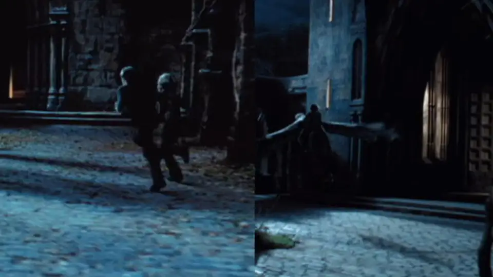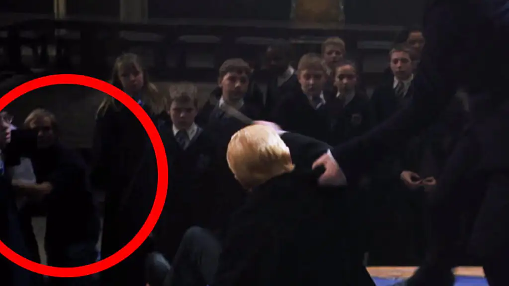 In der Folge „Harry Potter und die Kammer des Schreckens“ kann man mit „Schrecken“ den Kameramann hinter Draco Malfoy erkennen, der so gar nichts in Hogwarts verloren hat.