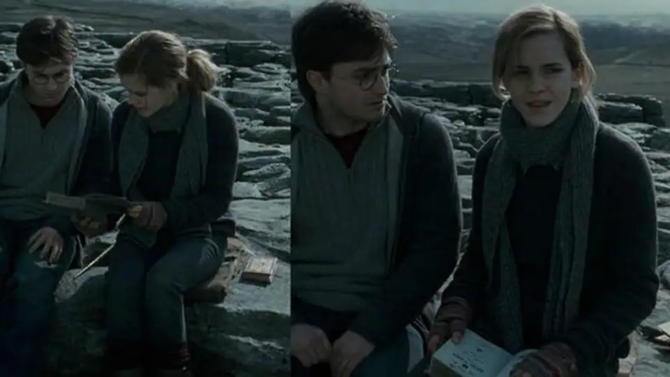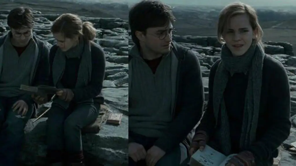 Im Film „Harry Potter und die Heiligtümer des Todes 1“ schlagen Harry und Hermine ein Buch auf, während das Buch daneben wie zufällig ebenfalls auf einmal aufgeschlagen da liegt.