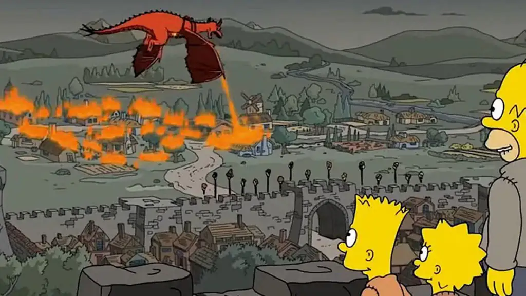 Bei den Simpsons hingegen brennt das Königreich jedoch bereits 2017 ab. Genauer gesagt in der Staffel 29 Folge 1. Hier hat allerdings der ungeschickte Homer den Drachen wiedererweckt, der dann alles abbrennt.