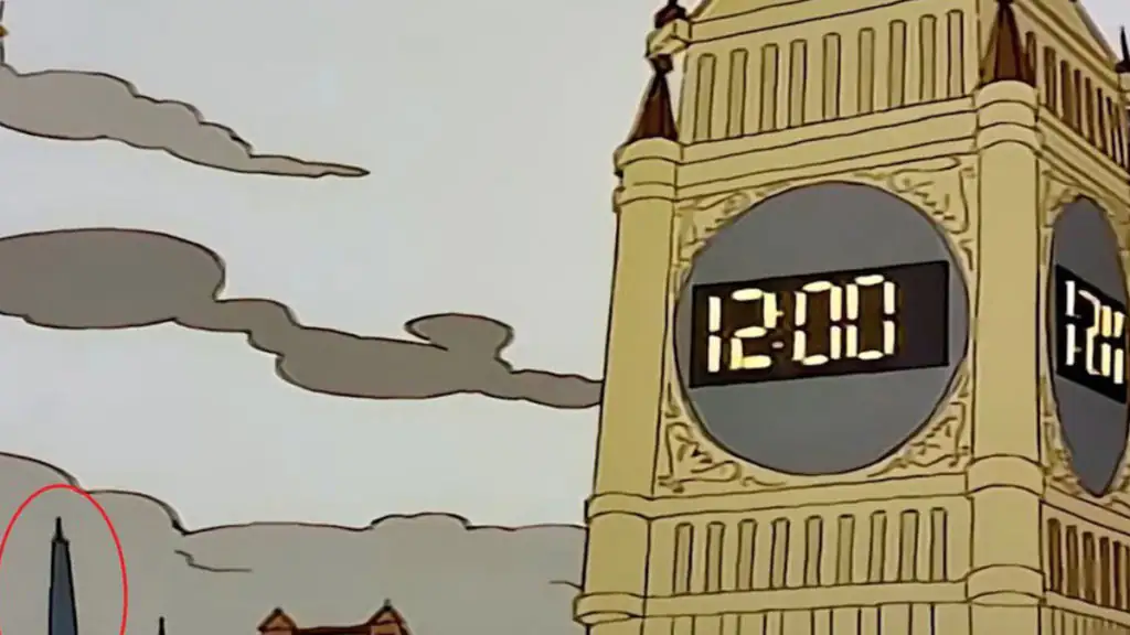 Mittlerweile steht genau an dieser Stelle ein solcher Wolkenkratzer mit dem Namen „Shard“. Man könnte meinen, die Londoner Stadtplaner haben sich mit den Machern der Simpsons zum Planen verabredet.