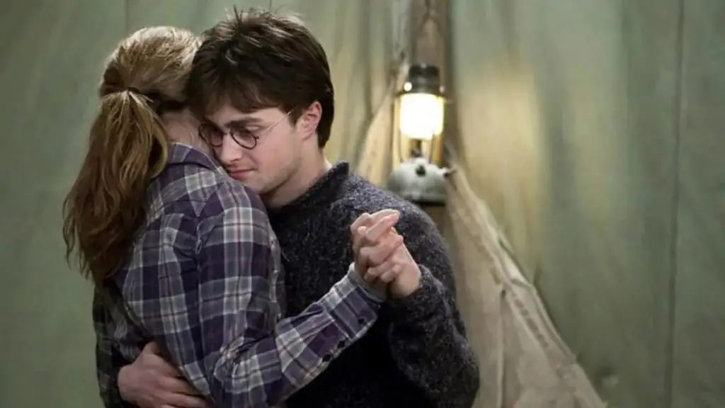 Durch das Horkrux-Amulett gab es einen bösen Streit zwischen Ron, Hermine und Harry.Ron war offensichtlich anfälliger für den negativen Einfluss dieses Amuletts. Die Alleingelassenen Hermine und Harry tanzten daraufhin zu einem Lied, das im Radio lief. Diese Szene hat es allerdings im Buch nie gegeben.