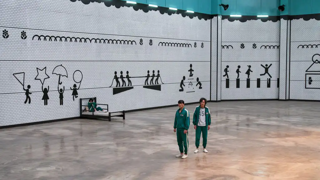 In Episode acht sind fast alle Betten im Schlafsaal der Teilnehmer verschwunden. Hier werden die Zeichnungen deutlich. Auf den Fliesen befinden sich kleine schwarze Bildchen, die Figuren zeigen. Diese nehmen an unterschiedlichen Spielen teil. Darunter zum Beispiel das altbekannte Kinderspiel „Tauziehen“. Die Bildchen geben Aufschluss darüber, welche Herausforderungen als Nächstes auf die Hauptdarsteller warten.