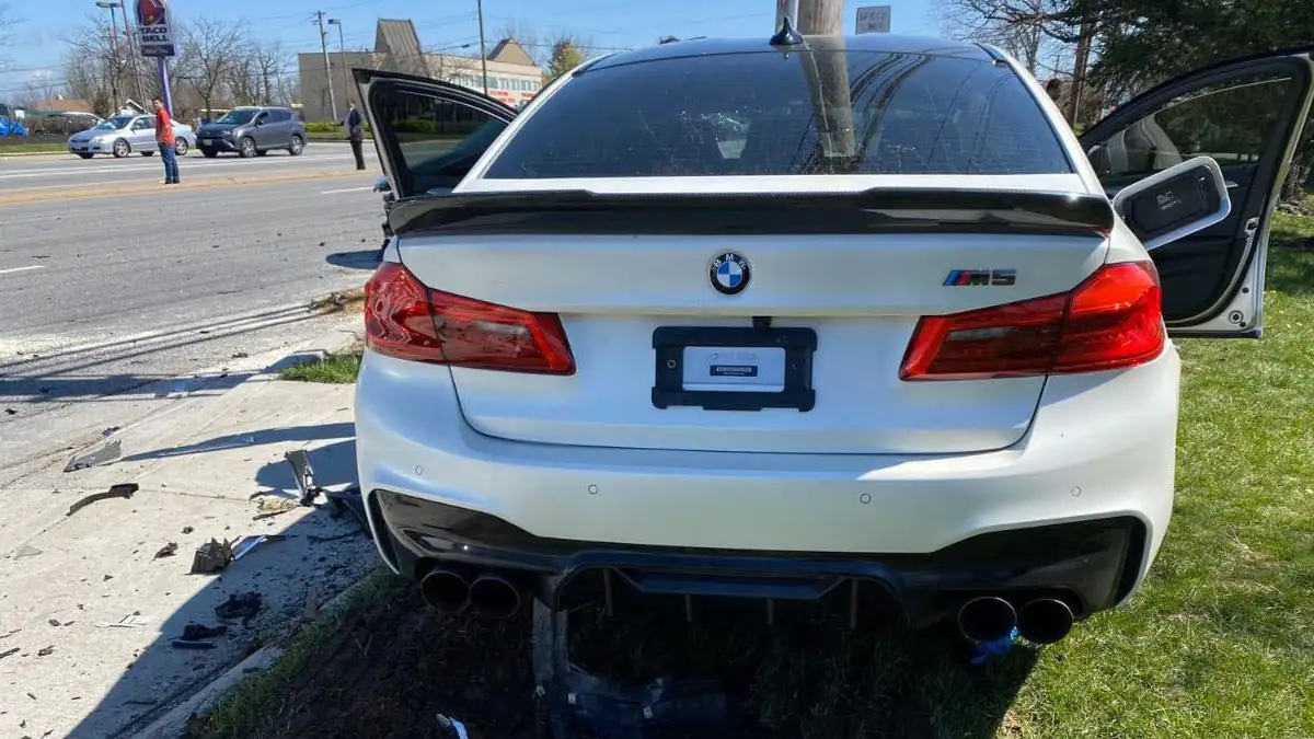 Der Unfall ereignete sich in Baltimore im US-Bundesstaat Maryland, wo ein Mann mit seinem nagelneuen M5 gegen einen Telefonmast krachte.