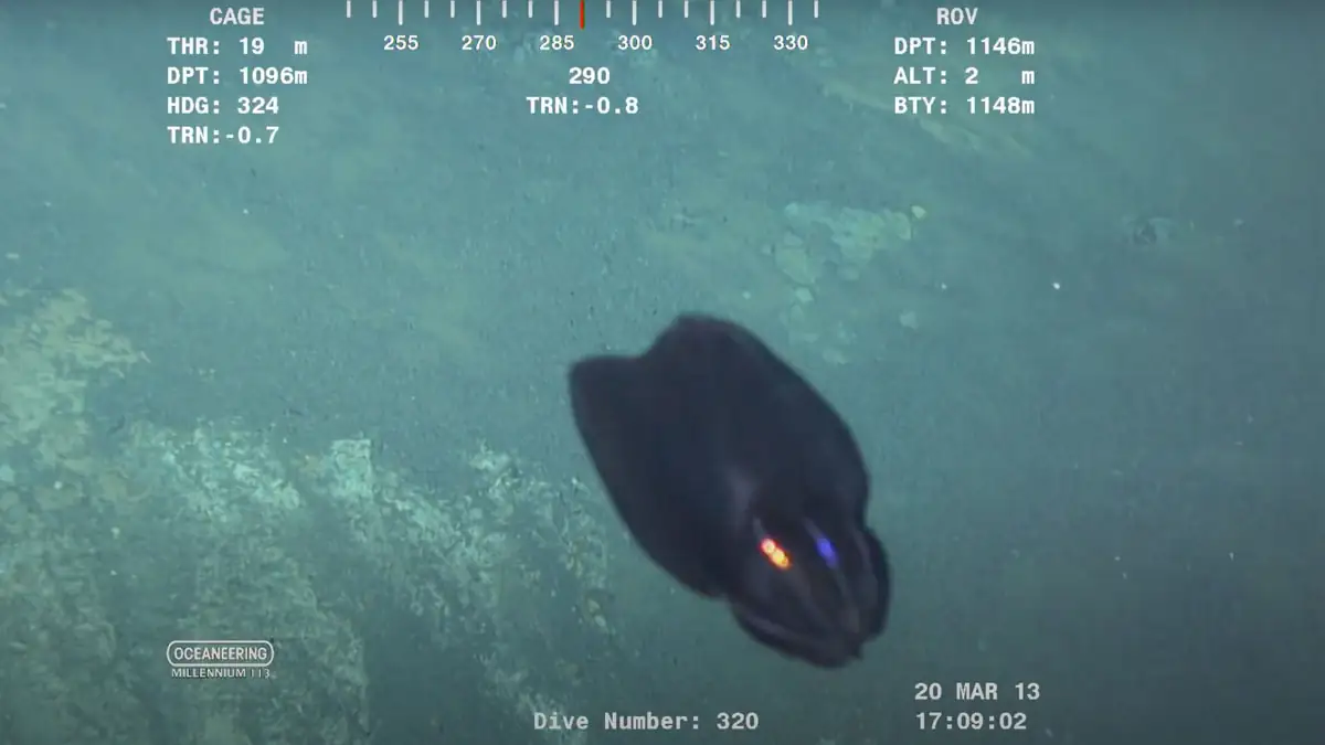 Gegen Ende der Aufnahmen sieht man leider, wie die Kreatur in den Ausstoß der ROV-Propeller gerät und zerrissen wird. Kommentaren auf YouTube zufolge, könnte es sich bei der Kreatur um eine Art Qualle handeln, die sich verwandeln kann und sogar leuchtet. Das müsste aber erst einmal von richtigen Experten überprüft und bestätigt werden.
